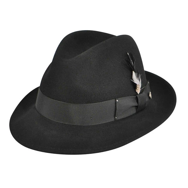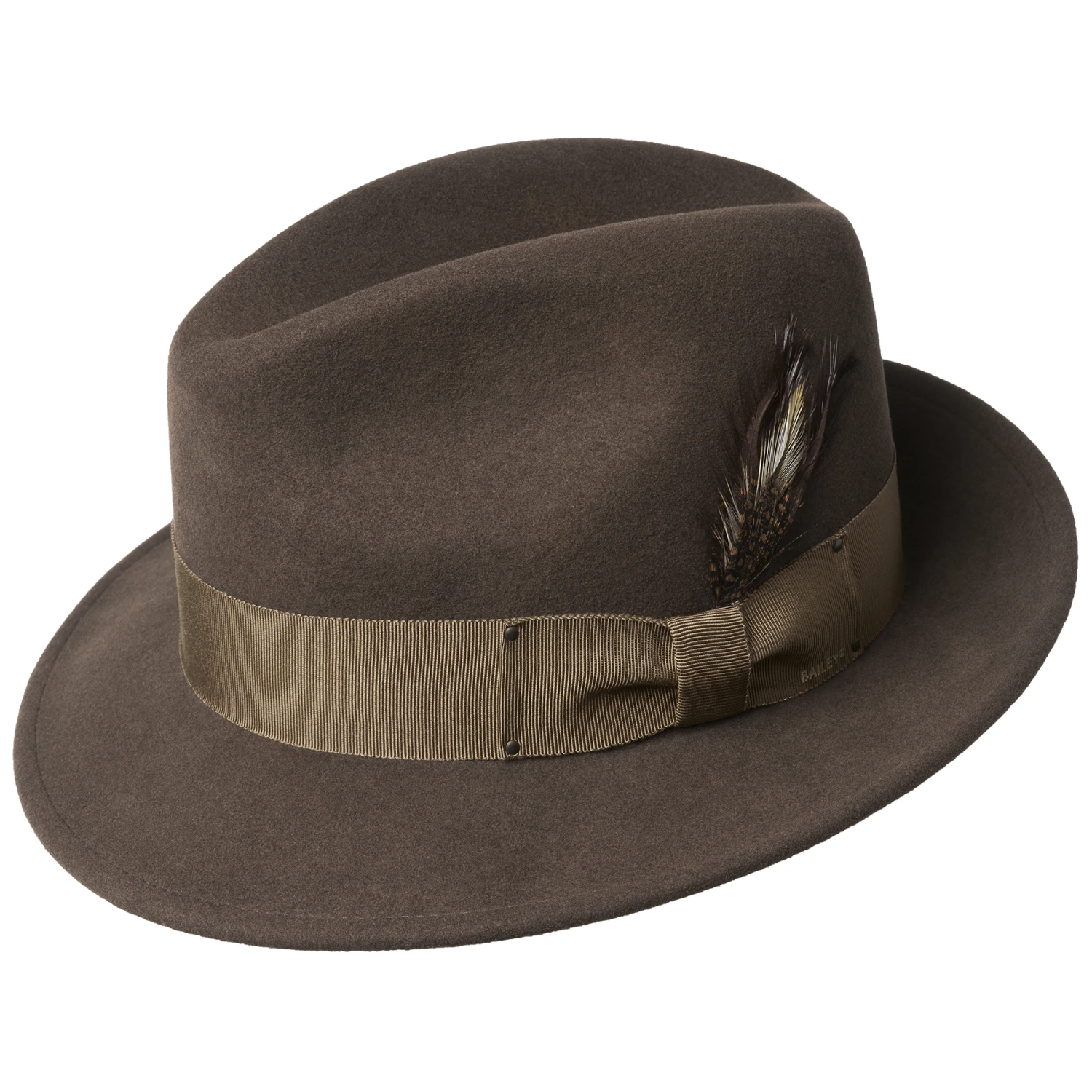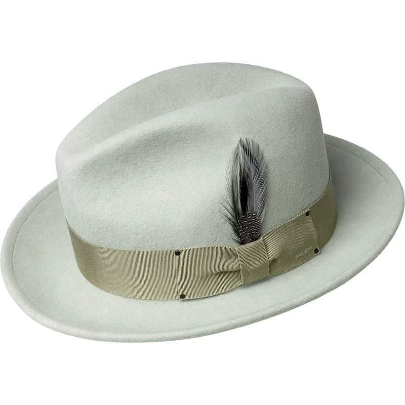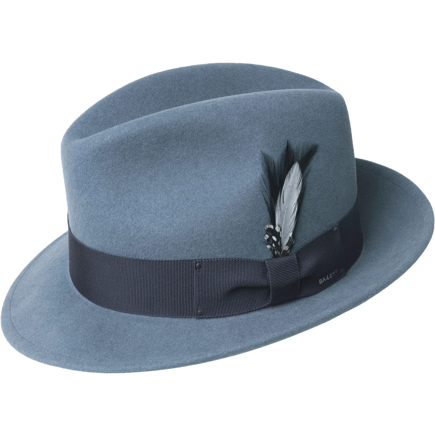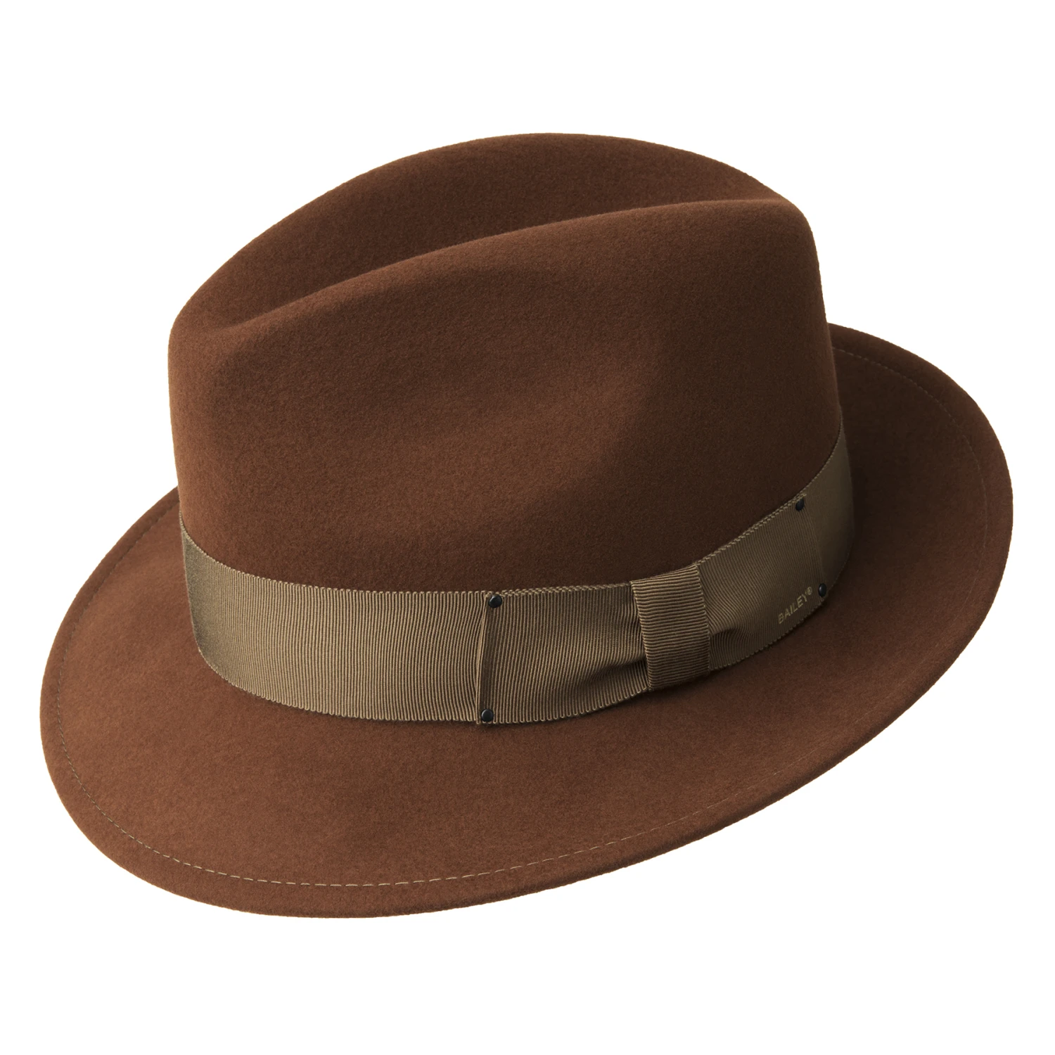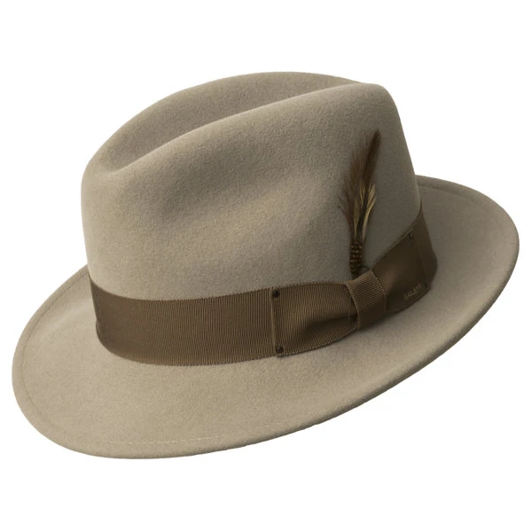 The Bailey Blixen Hat is a classic fedora with a center dent crown that is sure to become a best seller. Made from soft, packable water resistant Litefelt, this versatile hat has a medium 2 1/2 inch brim that can be worn up or snapped down, and is finished with a simple grosgrain ribbon hat band for a polished look. Made in the USA.