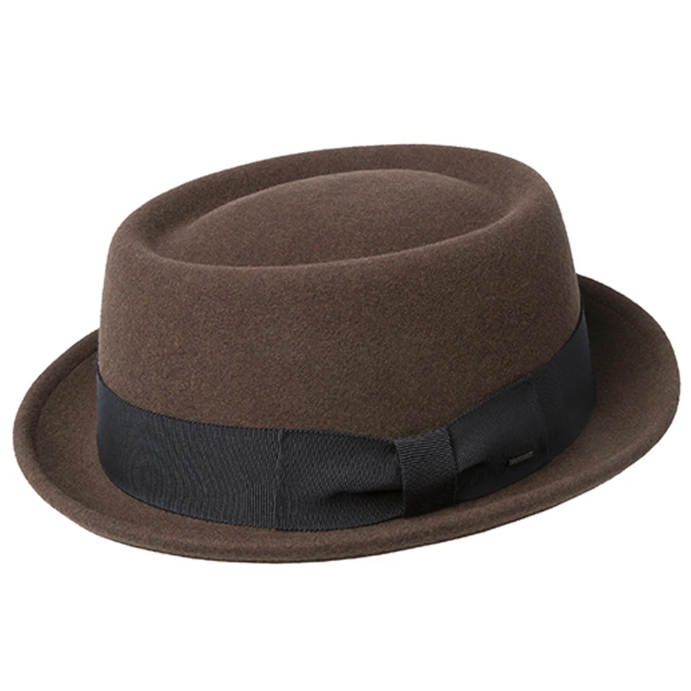 Bailey Darron Telescope-Crown Hat – New from Bailey and Made in USA, Darron has a telescope crown and a 1 1/2″ brim that can be snapped-down in the front or worn turned-up all the way-around. Litefelt(R) is a soft, comfortable wool felt from Bailey. Bailey Darron is trimmed with a grosgrain hat band. Trendy small-brim hat new from Bailey of Hollywood.