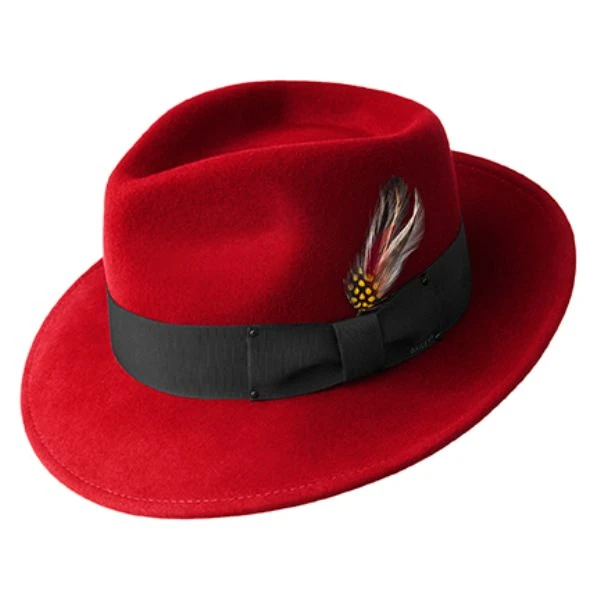 The Litefelt Fedora is a 100% Wool Felt Water Repellent Hat. Litefelt hats are crushable and always spring back to their original shape. Fedora has a pinch crown and a 2 7/8″ brim. Made in USA. Available in Red, Black, and Brown.