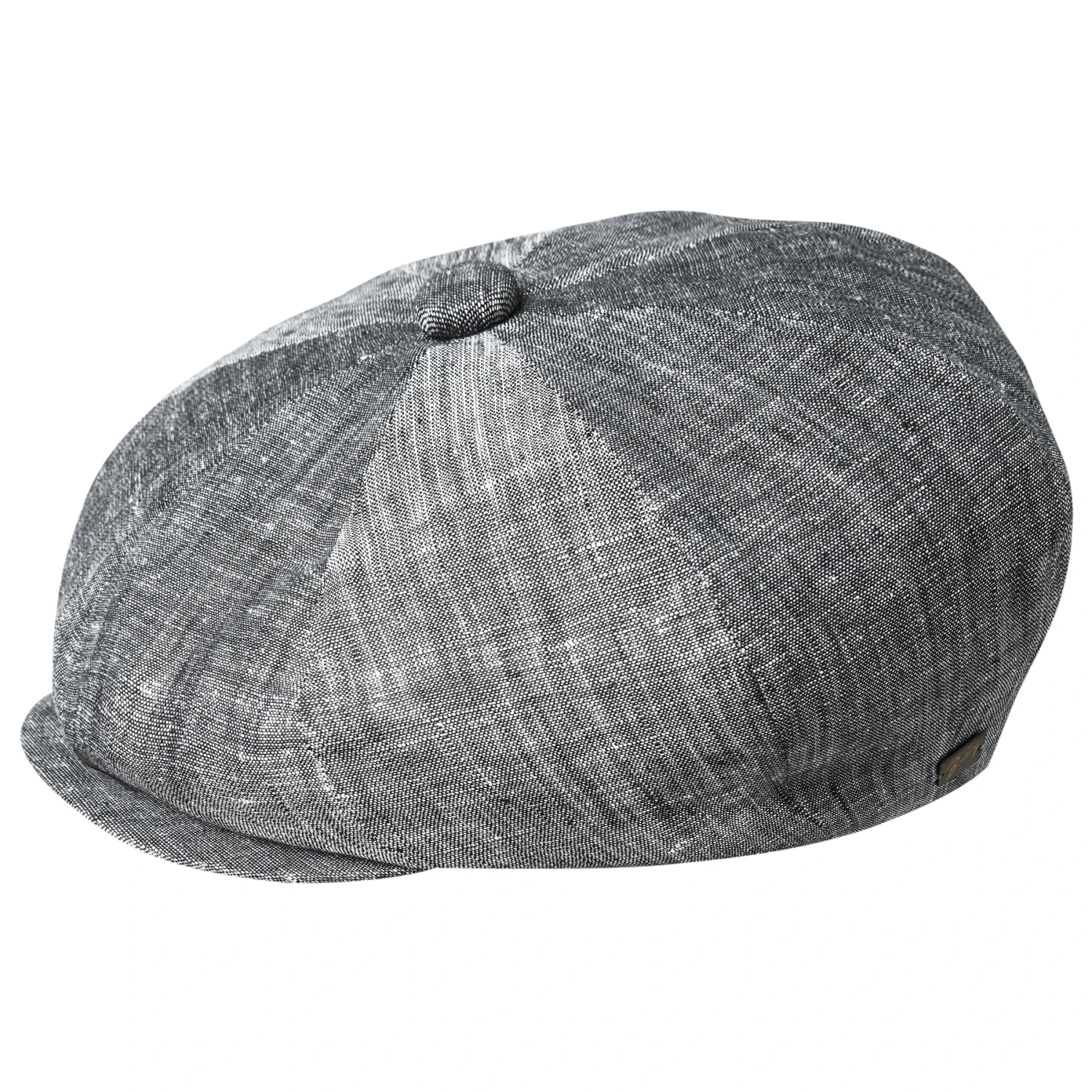A traditional eight panel newsboy with a unique pattern of color warps and white filling yarn; this cap is restrained but stylish. The Bailey of Hollywood Shawk Newsboy Cap is made with 100% lightweight linen and comes in light, muted color options, so it’s perfect for spring and summer. The Shawk is fully lined and has a comfort sweatband. This style is part of the Poet collection from Bailey of Hollywood; a group of hats that represent the notions of masculinity, toughness, and confident style