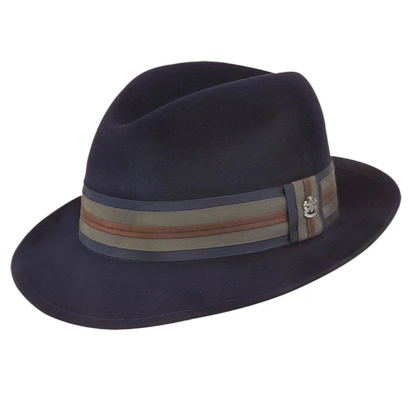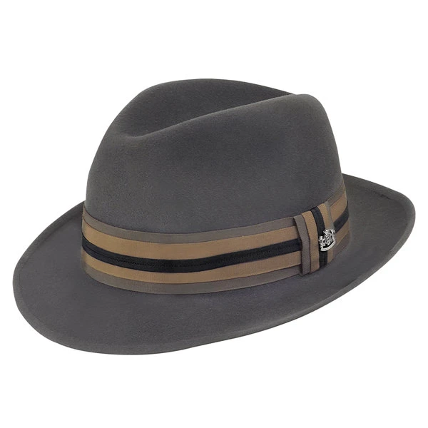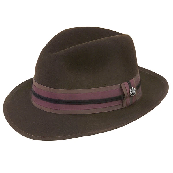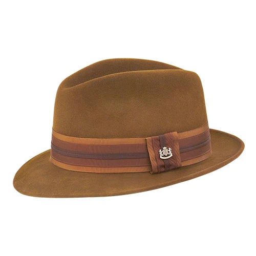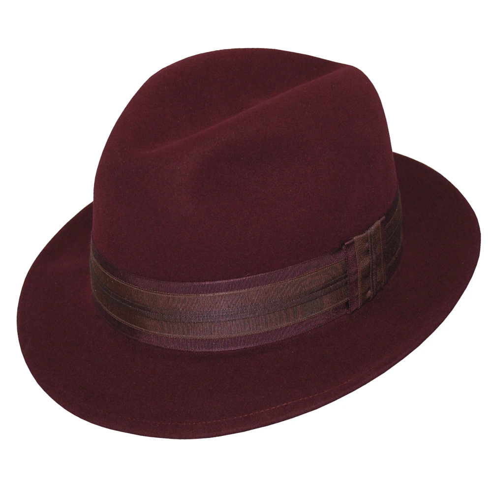 The Biltmore Uptown Fedora is a unique fedora with a centerdent crown and 2 inch brim which can be snapped down in front. Made from water resistant wool felt, this hat is as durable as it is soft. The hat band is a unique layered stripe band with textured stitching across the center, in complementary colors that give the hat a fashionable look. Lined with satin and finished with a leather sweatband. Made in the USA.