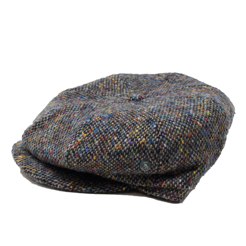 The City Sport Blaise Newsboy Classic Cap is a warm and stylish newsboy cap made from 100% Donegal Tweed wool. This cap features a sewn peak, eight-piece design, comfort sweatband, interior lining, and a rich multicolor grey tweed pattern. Made in Belgium by City Sport Caps since 1898.