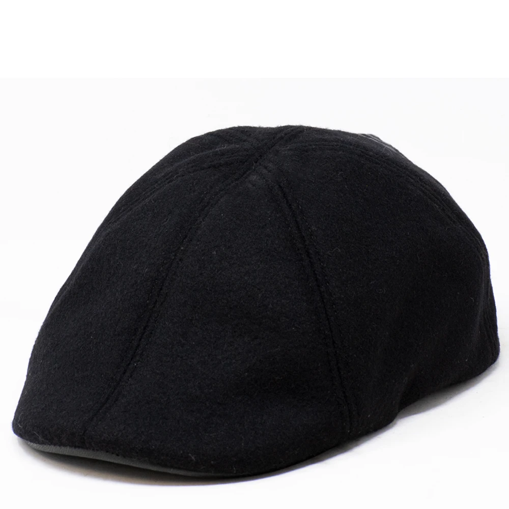The Crown Cap Melton Pub Cap with Leather is a warm and functional pub cap made from 100% melton wool. This cap features a sewn leather peak, six piece design, interior lining, and comfort sweatband. Made in Canada.