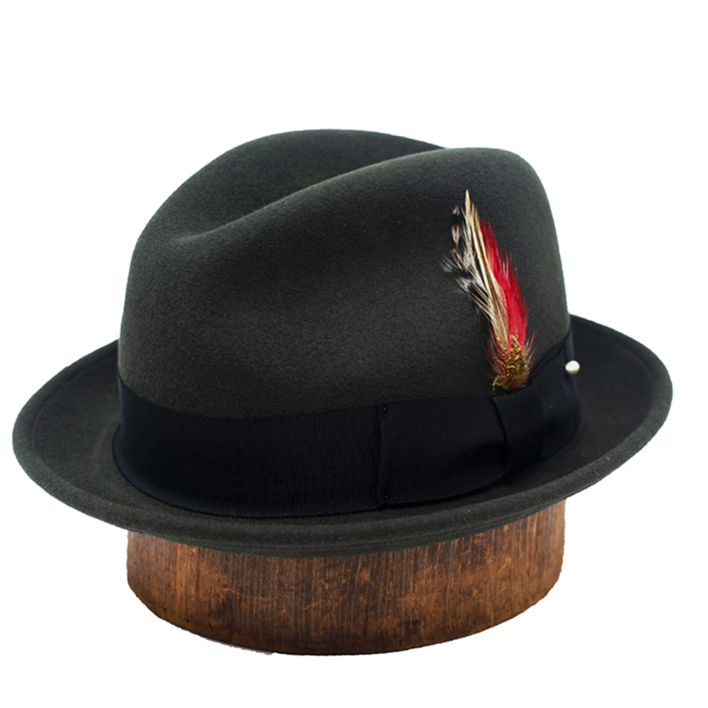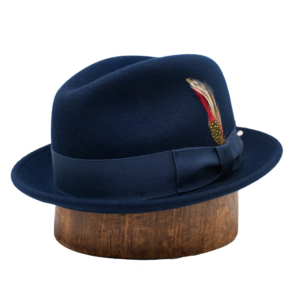 The DelMonico Blues Bros. Litefelt Fedora by Capas is a cool and classic fedora hat made from 100% litefelt wool. This hat features a 1 3/4″ brim with underwelt, 4″ crown, grosgrain hat band, cloth sweatband, and unlined interior. Fully packable and water repellent, made in the USA for us by Capas Headwear.