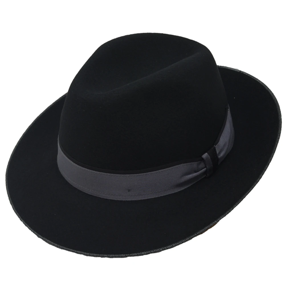 The Desmond Crushable Fedora is a splendid addition to our collection of crushable wool felt fedora hats. This 100% wool felt hat features a 4 1/4″ teardrop crown, 2 1/2″ brim with contrast whip stitch, two-tone grosgrain ribbon, and comfort sweatband. Lightweight felt, crushable, rollable, and water repellent. Made for us by Stefeno hats in Italy.