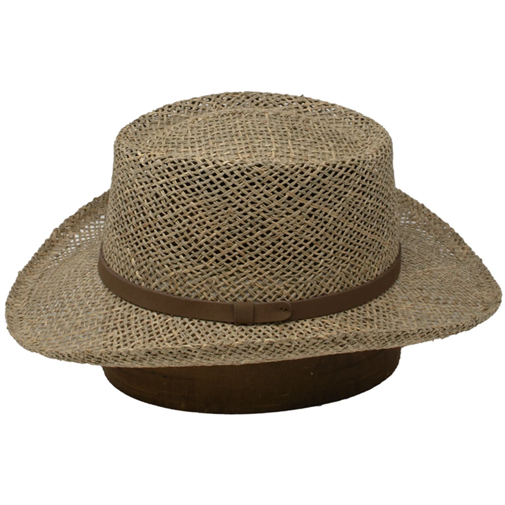 The DelMonico Gambler Seagrass Fedora by Capas is a stylish and breathable gambler style hat made from 100% seagrass. This gambler features a 4″ crown, 3″ brim, comfort sweatband, leatherette hat band, and Teflon-enforced crown. Made in the USA.