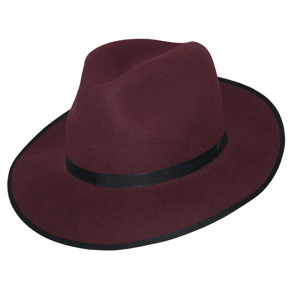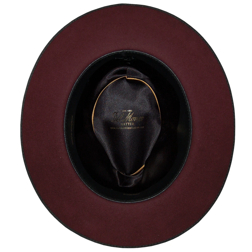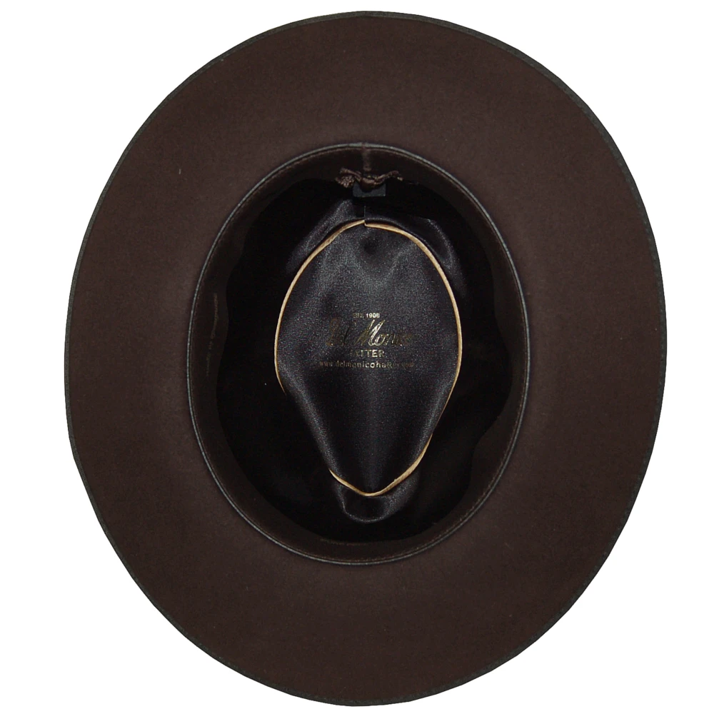 DelMonico Gilmore Fur Felt Blend Fedora is a luxury hat designed exclusively for DelMonico Hatter. Made from a soft blend of Fur Felt and Wool Felt. Trimmed with a narrow grosgrain hat band. This hat has a classic centerdent crown and a 2 3/4″ brim with a bound edge to match the grosgrain hat band. The interior of the hat has a leather sweatband and is fully lined with a custom DelMonico Hatter lining. Made in Spain.