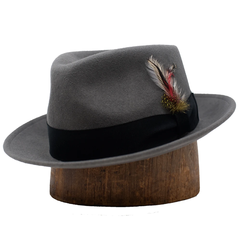 The DelMonico Indy Litefelt Fedora by Capas is a classic and wearable fedora hat made from 100% litefelt wool. This fedora features a 4″ teardrop crown, 2 1/4″ brim with underwelt, grosgrain hat band, comfort sweatband, and unlined interior. Packable, water repellent, and proudly made in the USA.