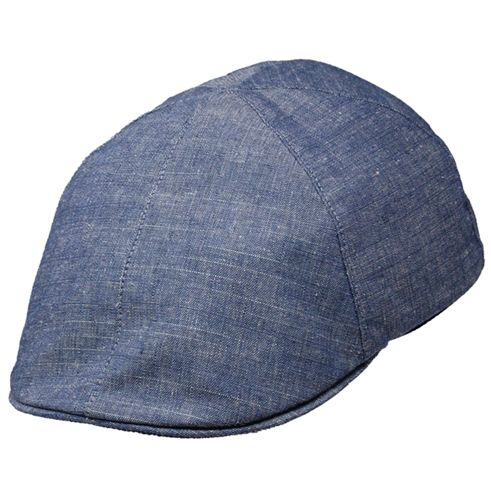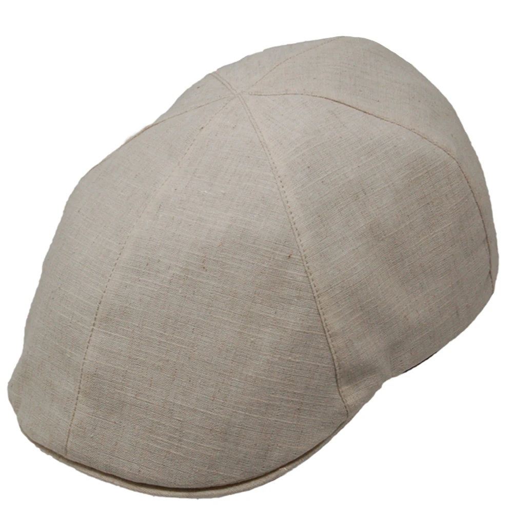 The DelMonico Linen Pub Cap is a beautiful warm weather pub cap made from linen/cotton blend fabric. This cap features a six-piece design, mid curved peak, interior check lining, and comfort sweatband. Made in China.