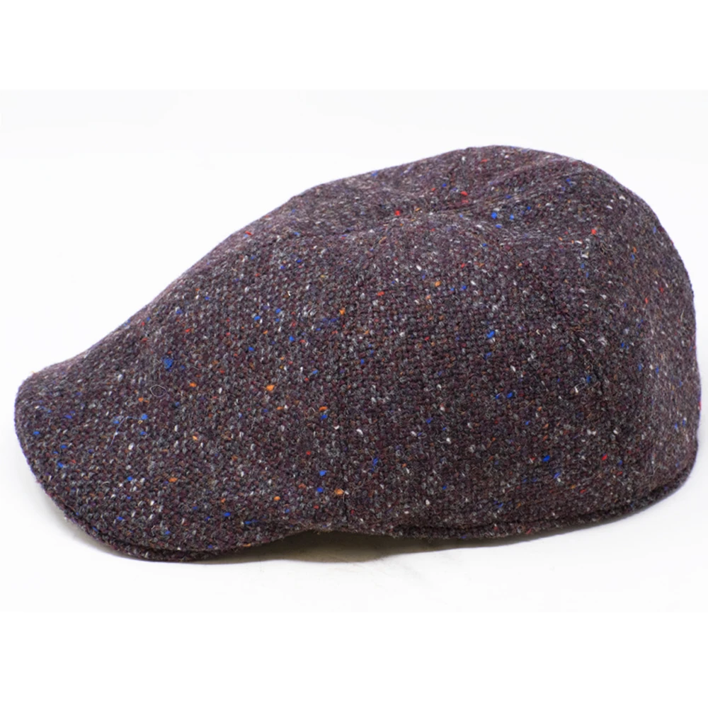The Hanna Erin Duckbill Tweed Cap is a slim fitting and stylish pub cap made from 100% Irish wool. This cap features a sewn duckbill peak, six-piece design, comfort sweatband, and interior lining. Made in Donegal, Ireland.