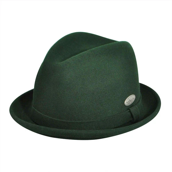 LiteFelt® has long been a standby for many of the other caps and hats we sell. Now Kangol is offering this soft, packable wool material in a variety of their best-selling shapes. Popular Player shape features a stingy brim that can be worn turned-up all the way around, down in the front and up in the back, or down all the way around. Kangol Oval Metal pin logo on left-hand side of the hat.
