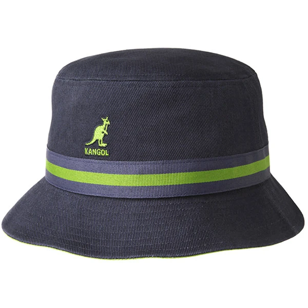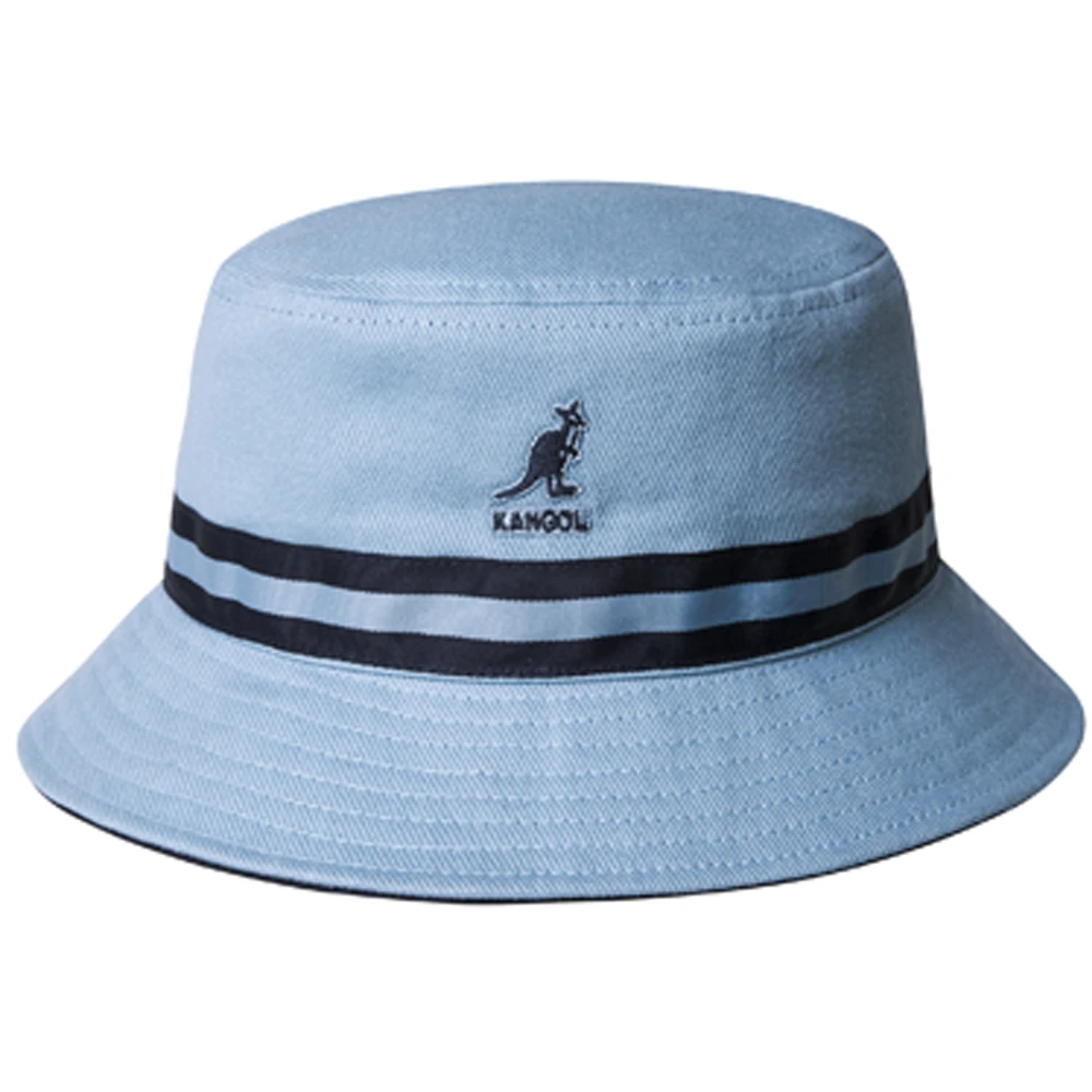 The Kangol Stripe Lahinch Hat is a casual bucket hat made from sturdy 100% cotton canvas fabric. The hat has a striped band and a contrast colored underbrim for a dash of color, and the downbrim is the perfect 2 1/4 inch length to shade from the sun.