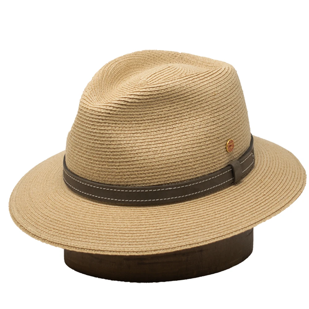 The Mayser Mathis Downbrim Straw Hat is a cool and comfortable downbrim hat made from straw blend material. This finely woven hat features a 4″ crown, 2 1/4 by 2 1/2″ downbrim, comfort sweatband, leather hat band, and sewn Mayser pin. This hat is crushable, packable, and offers UV 80 sun protection. Designed in Germany, made in Slovakia.
