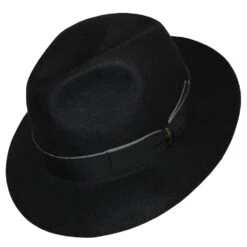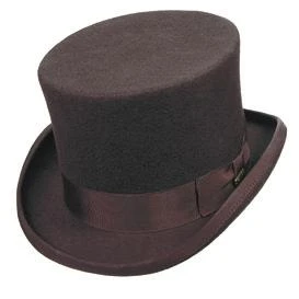 The Scala Top Hat is a truly classic style top hat made from a wool felt material. It has a 2″ bound brim which is upturned slightly on the sides. The hat has a wide grosgrain hat band with a finished bow detail. The interior is fully lined with a satin lining and finished with a leather sweatband.