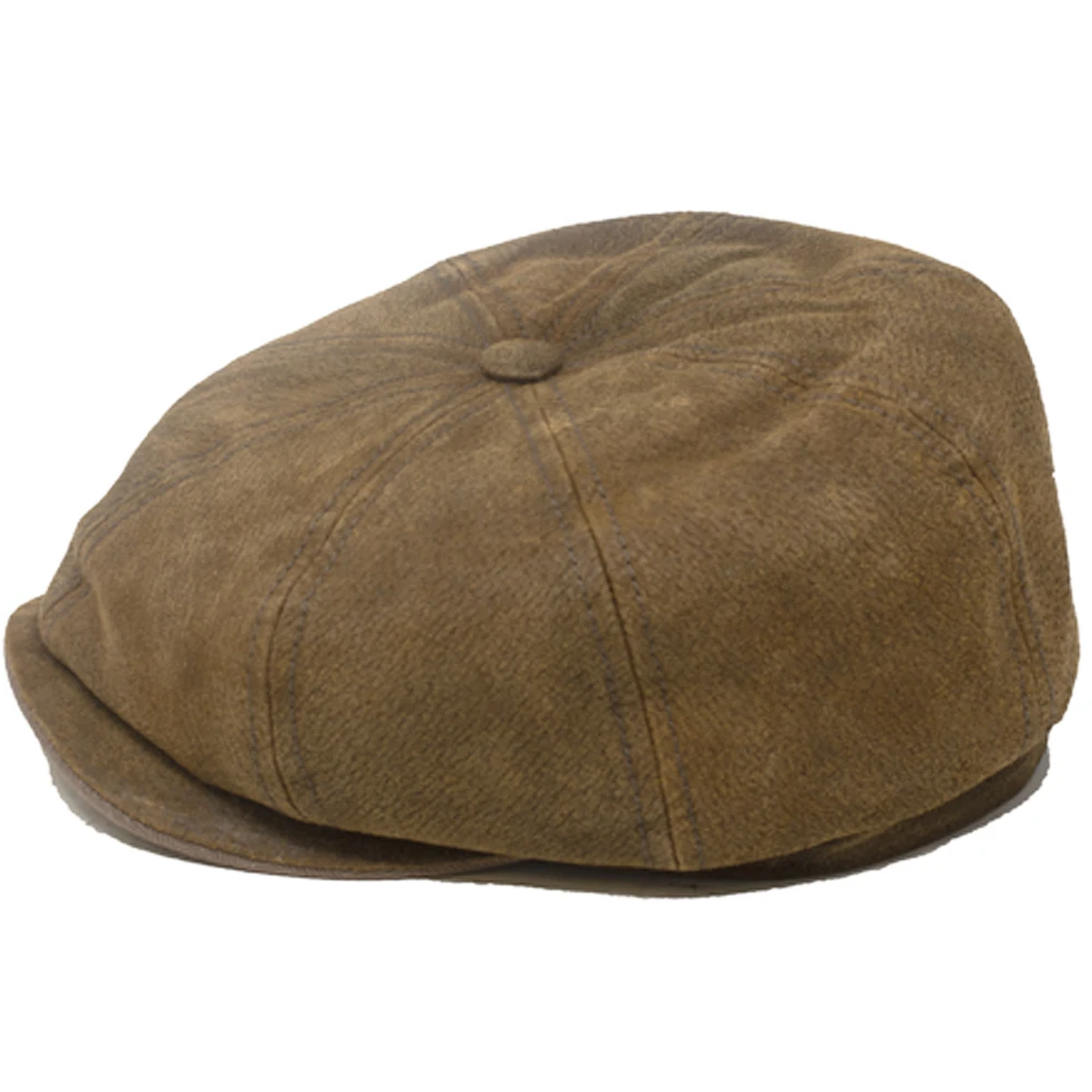 The Stetson 8 Panel Pigskin Newsboy Cap is a well-crafted newsboy cap made from 100% leather. This cap features an 8 piece design, sewn curved peak, comfort sweatband, interior cotton lining, and distressed finish. Part of the Stetson Europe Collection.