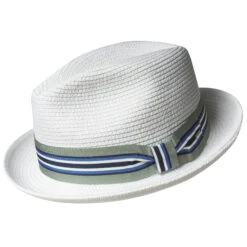 The Stetson Cranston Porkpie Hat is a bold take on the traditional porkpie. A slightly higher 3 1/2 inch telescope crown meets a curved 1 1/2 inch brim for a unique style, paired with a wider ribbon hat band tied in a neat bow and topped with a Stetson wordmark pin. The soft felt hat has a cotton sweatband inside for comfort, whether you’re building an empire or just out on the town. Made in the USA.
