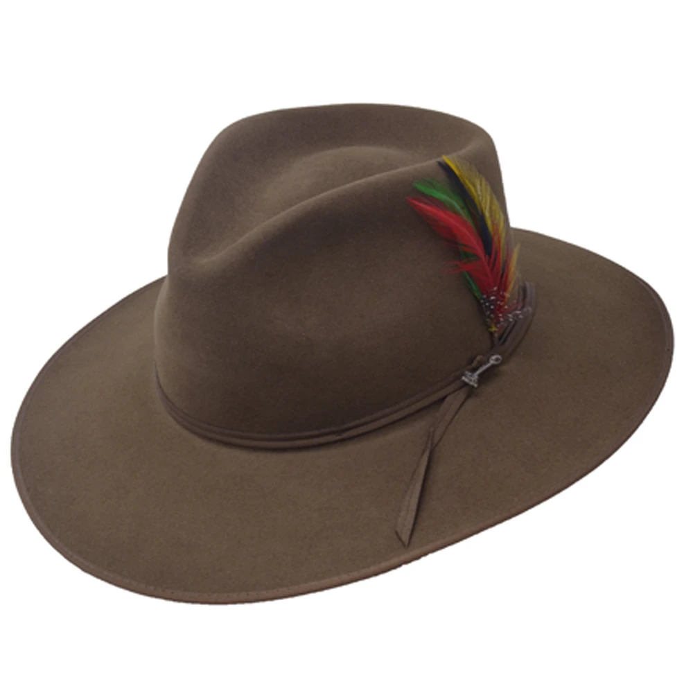 The Stetson Dune Gun Club hat is a top-quality hat included in the Stetson 5X Collection of durable felt hats. Interior leather sweatband for the ‘ultimate in fit and comfort’. The Stetson Dune has a 4 1/4″ teardrop crown and a dimensional brim that measures 3″ on each side and 3 1/4″ front and back. The hat has a grosgrain hat band and a grosgrain binding around the edge of the brim. Comes in an authentic Stetson Western hat box at no additional charge. Made in Texas.