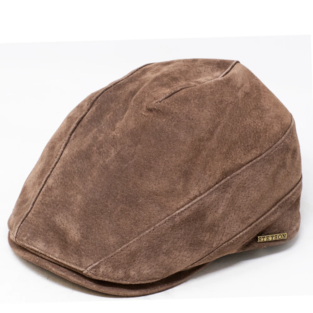 The Stetson Leven Suede Ivy Cap is a cool and stylish ivy cap made from 100% sueded leather. This cap features a sewn peak, slim design, comfort sweatband, cotton interior lining, and Stetson logo pin. Part of the Stetson Europe Collection.