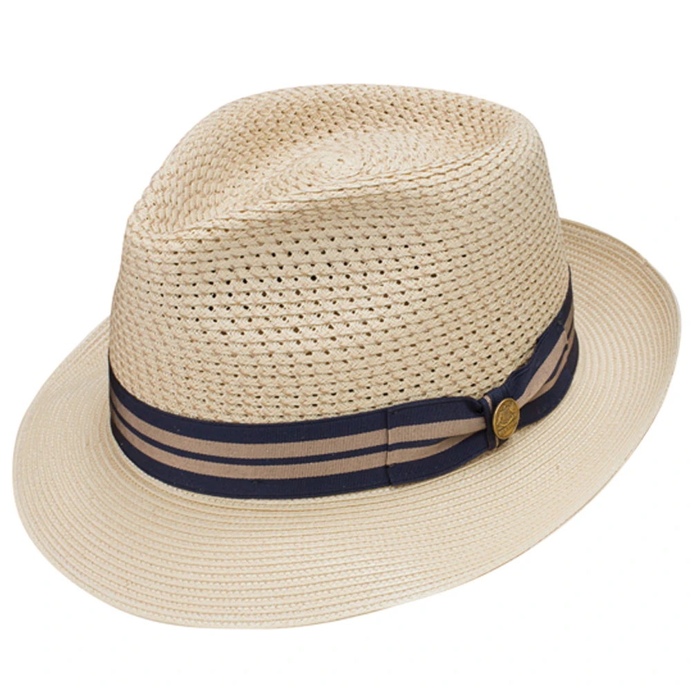 The Stetson Nantucket Milan Straw Fedora is a fun and breathable fedora made from milan braid straw. This hat features a 2 1/4″ brim, open weave crown, stylish contrast ribbon, cowhide sweatband, and soft finish. Made in Texas.