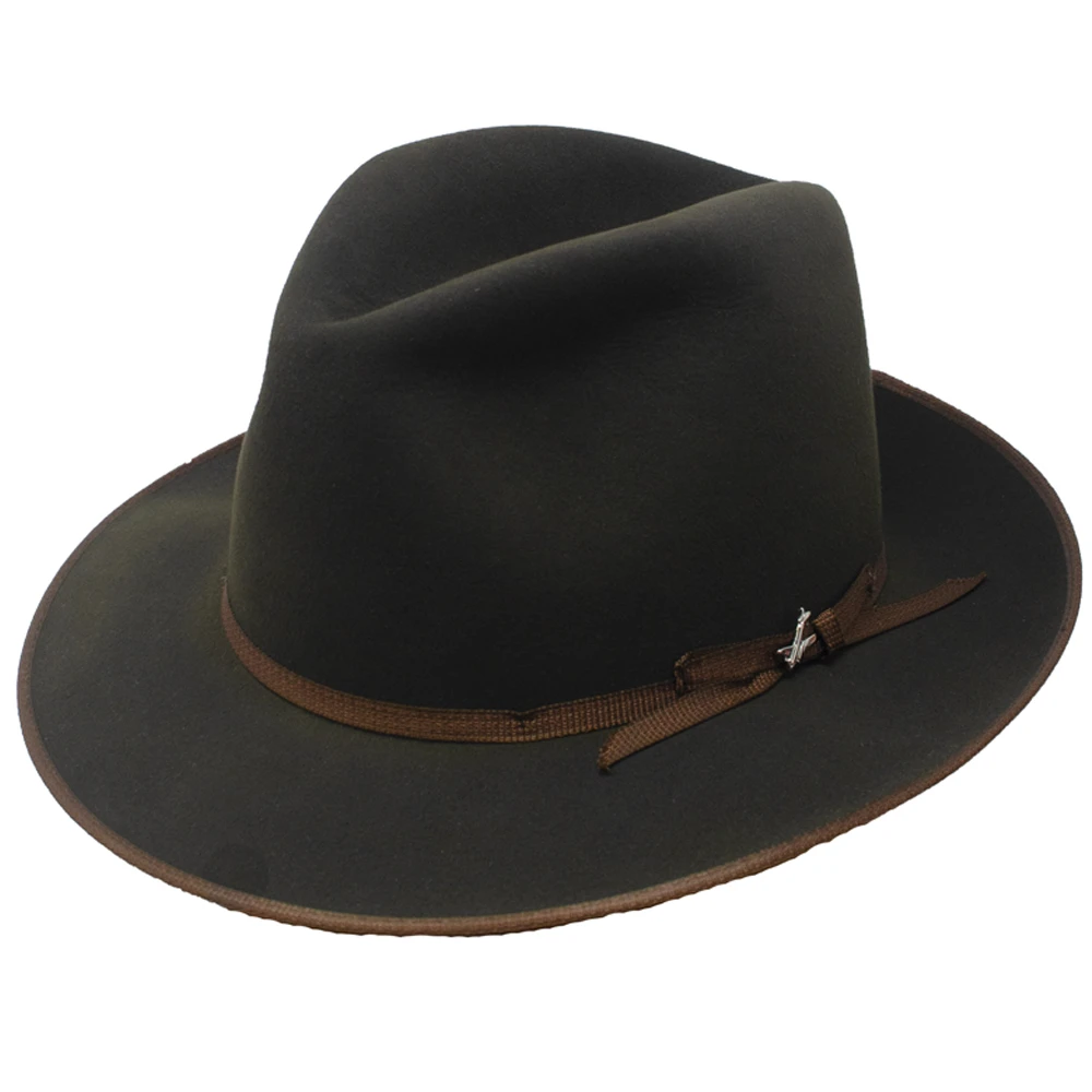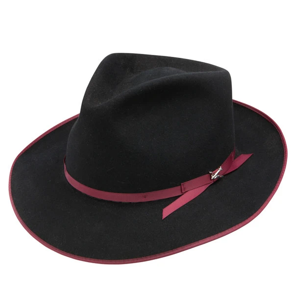The Stetson Stratoliner Special Edition Fedora is a special version of the Stratoliner, a favorite vintage Stetson style. The classic 4 1/2 inch teardrop crown and 2 1/2 inch bound edge brim are the same, made from soft royal quality fur felt, but this edition features contrasting edging and a contrast slim ribbon hat band for a bolder look that is sure to please. An interior leather sweatband ensures a comfortable fit, and as always the Stratoliner is finished with an unmistakable metal airplane pin. A beautiful addition to the Stratoliner collection. Made in the USA.