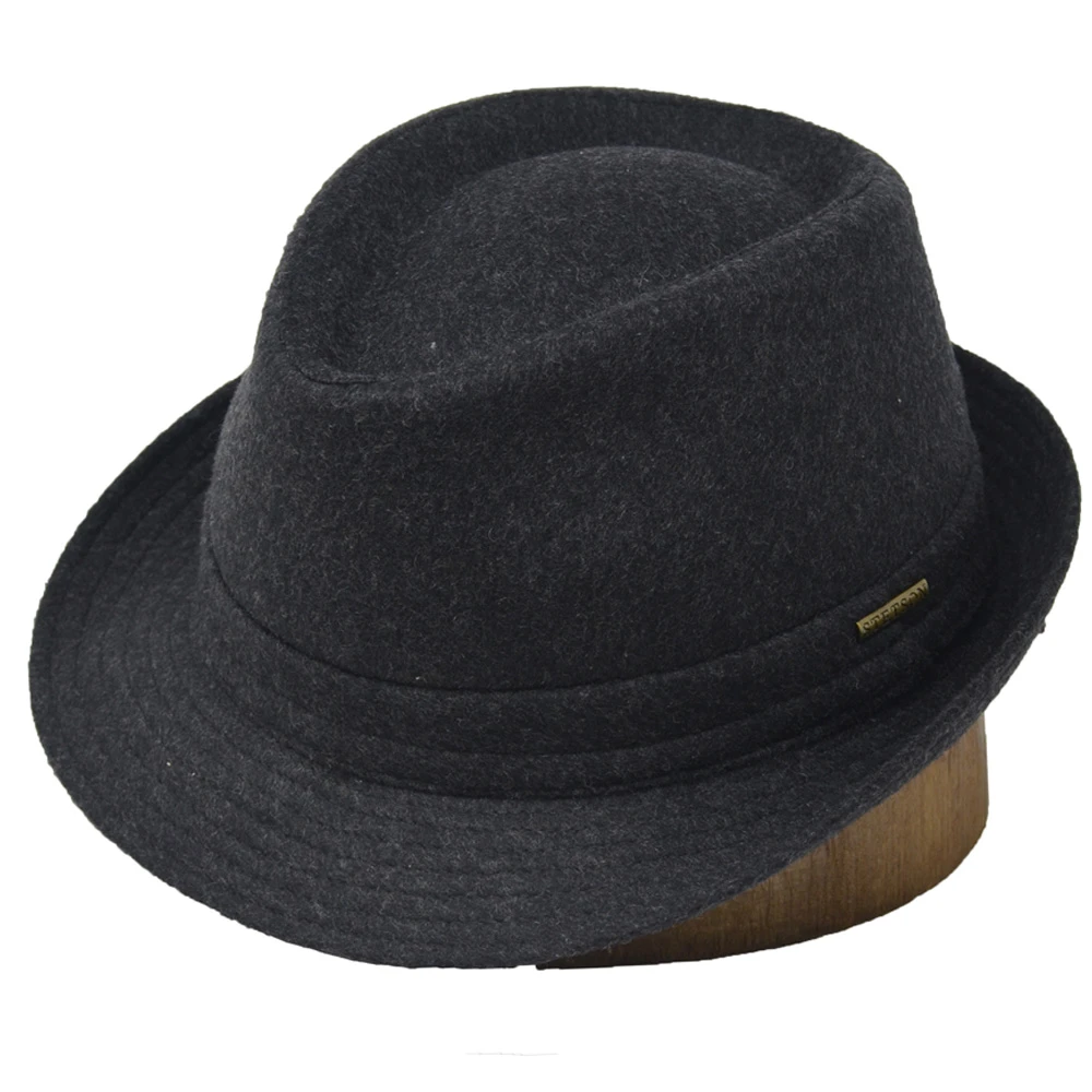 Stetson Wool Trilby Hat included in the Stetson European Collection. Offered in the U.S. by DelMonico Hatter. Hat is a wool blend – 75% Virgin Wool. Brim is 1 1/2″ and the Teardrop Crown measures 3 1/2″ at the low-point in the front of the hat. Hat is fully lined and has an interior fabric sweatband. A discrete Stetson pin is on the left side of the hat. Included in the Stetson European Collection – Made in Italy