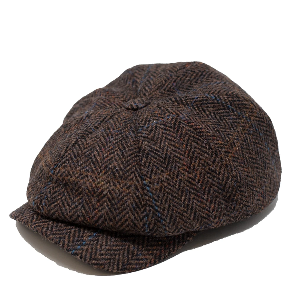 The Wigens Edmund Harris Tweed Newsboy Classic Cap is a warm and stylish newsboy cap made from 100% Harris Tweed wool in herringbone pattern. This cap features an eight-piece design, mid-curved peak, self back band, and polyester lining. Designed in Sweden, made in Estonia.