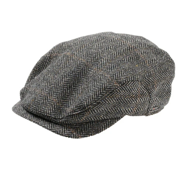 Wigens Jacob – Ivy Style 100% Wool Herringbone Cap. Tweed is a herringbone pattern; Blue is a dark grey herringbone over a background of navy blue, grey and beige. Brown is a deep chocolate brown herringbone over a lighter brown background with beige and grey. Dark Grey is a black herringbone pattern over dark grey background.- In color Blue and Brown there is a faint windowpane plaid overlay. Tweed material is hand-woven in the UK. Wigens Jacob is fully lined. Swedish Design and Quality – Made in Estonia. Wigens says – Use Your Head.