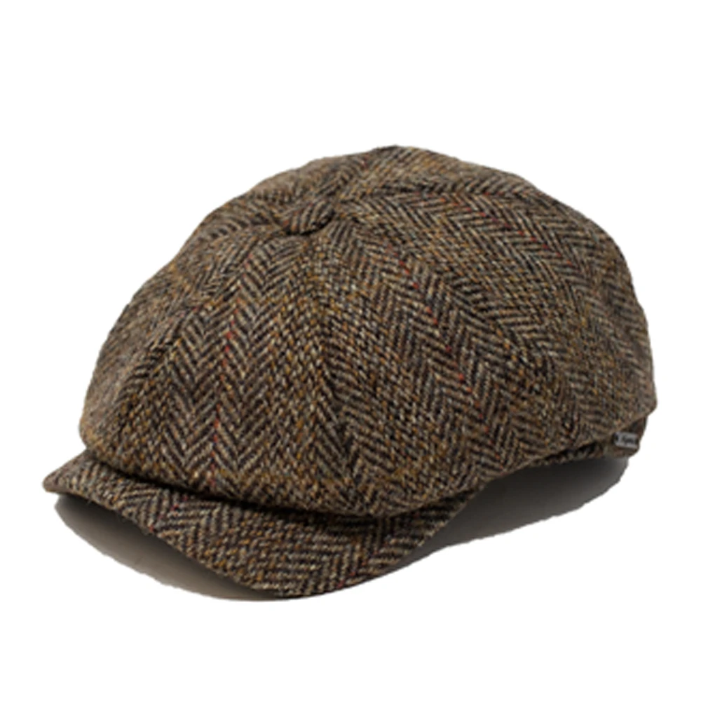 The Wigens Stuart Harris Tweed Newsboy Classic Cap is a warm and stylish newsboy cap made from 100% Harris Tweed wool in herringbone pattern. This cap features an eight-piece design, mid-curved peak, self back band, and polyester lining. Designed in Sweden, made in Estonia.